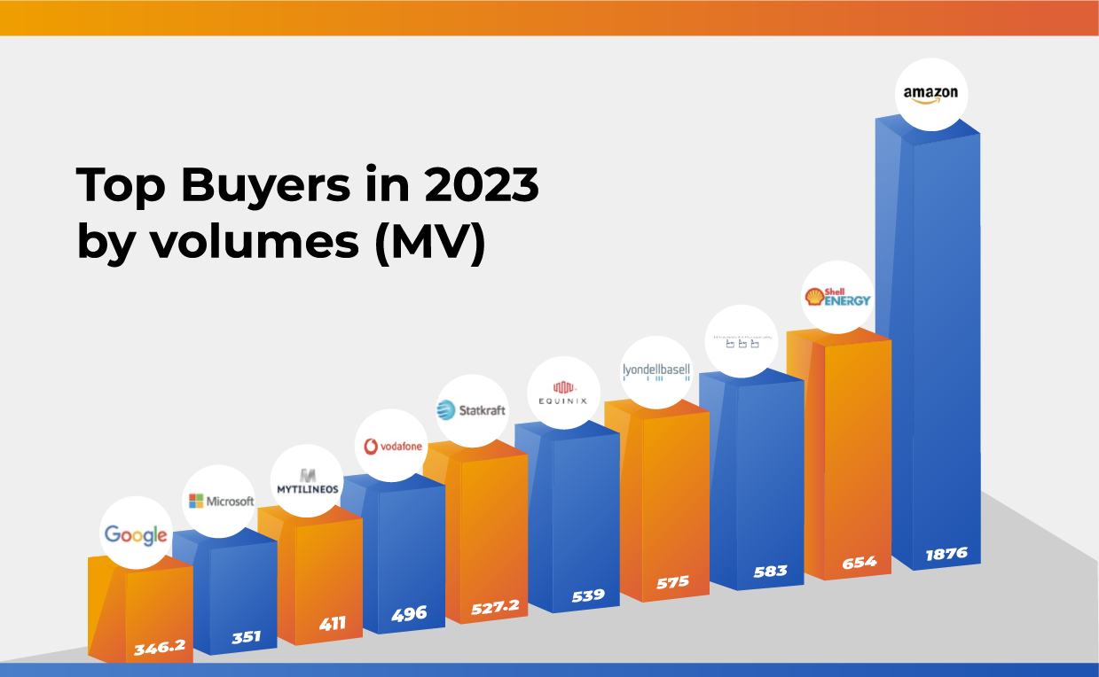 Among the major renewable energy buyers were technology companies and firms from other sectors, such as oil companies and telecommunications service providers.