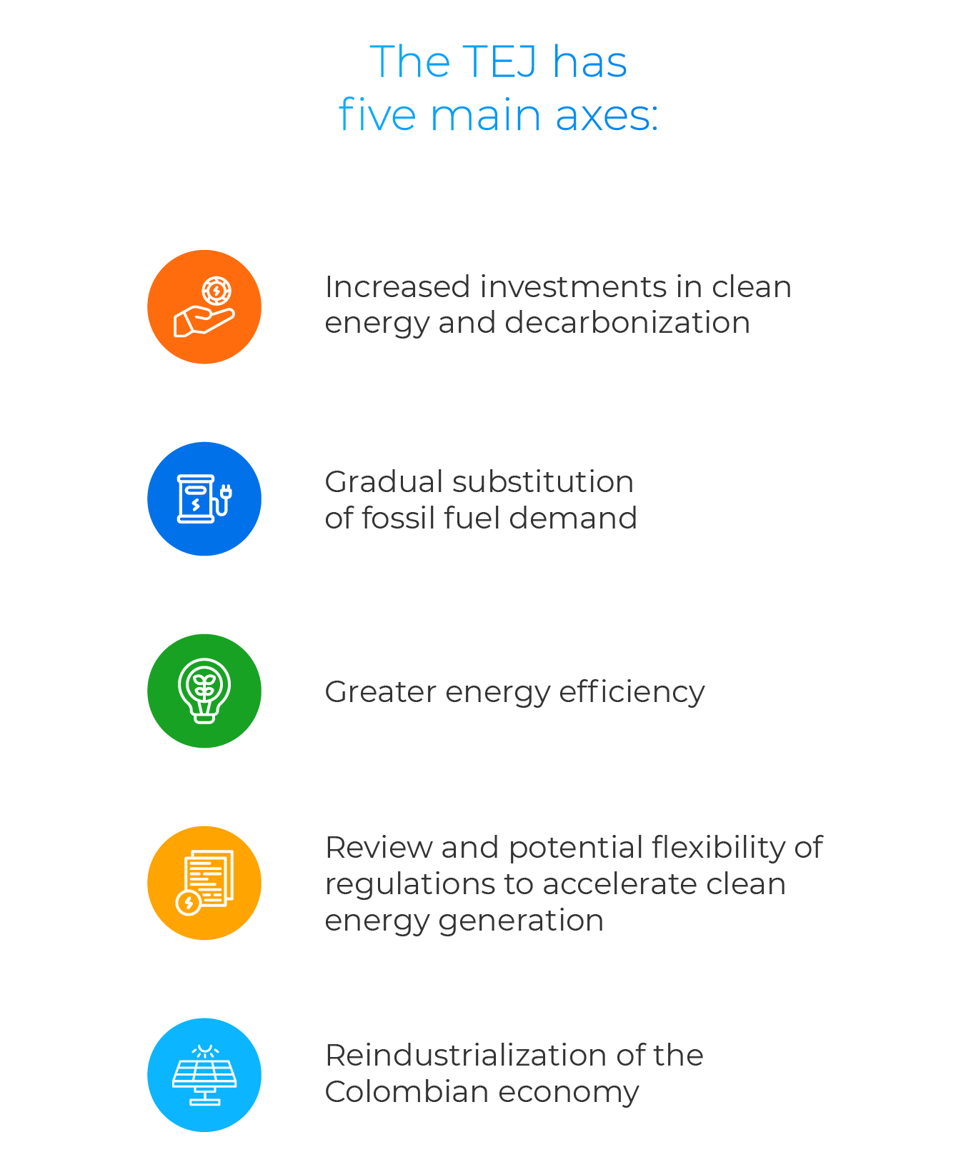 The Just Energy Transition (TEJ) is a core objective of the Colombian government aimed at advancing sustainable energy use, ensuring energy sovereignty, and guaranteeing access to energy for all citizens. It also encompasses actions to address the challenge of climate change.